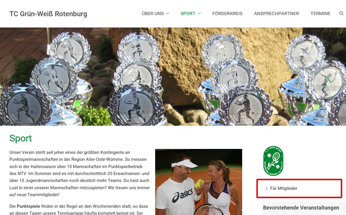 In den Mitgliederbereich gelangt ihr von jeder Seite unserer Homepage. Hierzu klickt ihr einfach auf „Für Mitglieder“ im rechten Bereich: