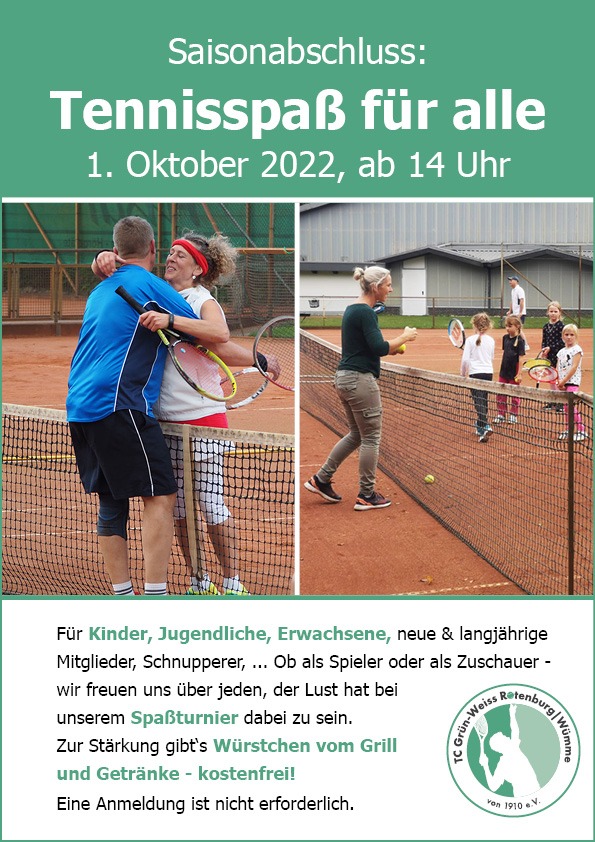 Am 1. Oktober geht’s ab 14 Uhr los. Hier starten wir mit unserem Spaßturnier für alle Mitglieder und Schnupperer von klein bis groß. Eltern und Gäste sind ebenfalls herzlich willkommen. Eine vorherige Anmeldung ist nicht erforderlich. Kommt einfach vorbei – und wer es nicht um 14 Uhr schafft, stößt eben später dazu.