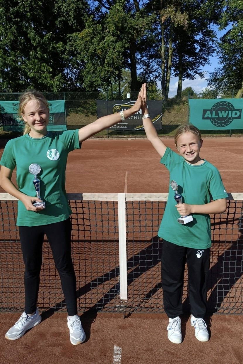Besonders spannend machten es die Juniorinnen U10: Martha Mehnen und Agnes Runge zeigten gegen den TC Dinklage großen Kampfgeist und mussten sich in einem engen Duell knapp geschlagen geben. Mit dem Silberpokal in der Regionsliga Weser-Ems belohnten sie sich dennoch für eine starke Saisonleistung.